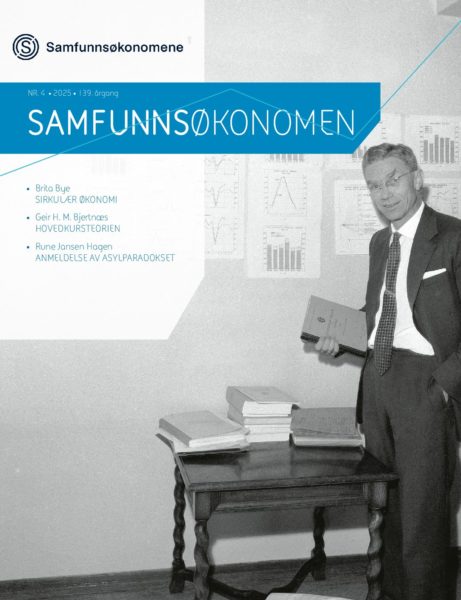 Last ned PDFI Samfunnsøkonomen 4/25 kan du lese om tre svært aktuelle temaer. Brita Bye presenterer ekspertgruppens forslag til hvordan Norge kan ta steget mot en mer sirkulær økonomi, Geir H. M. Bjertnæs diskuterer fallgruvene i frontfagets hovedkursteori, og Rune Jansen Hagen anmelder boken Asylparadokset. Utgaven gir nye perspektiver på både klima- og ressursutfordringer, lønnsdannelse og internasjonal migrasjon – temaer som preger samfunnsdebatten i dag.